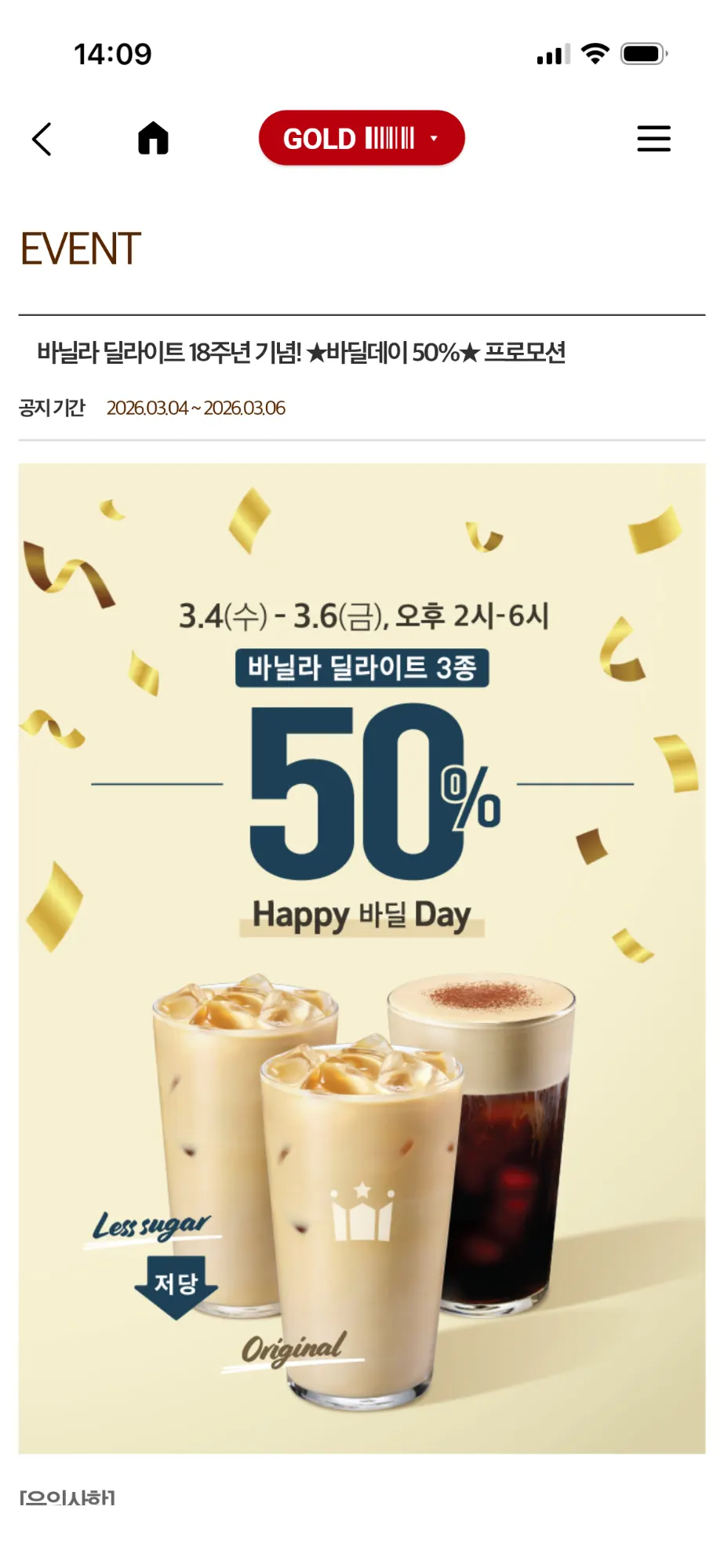 - 대상메뉴: 바닐라 딜라이트, 저당 바닐라 딜라이트, 바닐라 딜라이트 아인슈페너 (디카페인 메뉴는 대상메뉴에서 제외됩니다.)