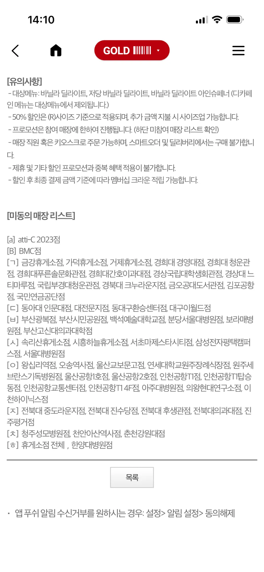 - 프로모션은 참여 매장에 한하여 진행됩니다. (하단 미참여 매장 리스트 확인)